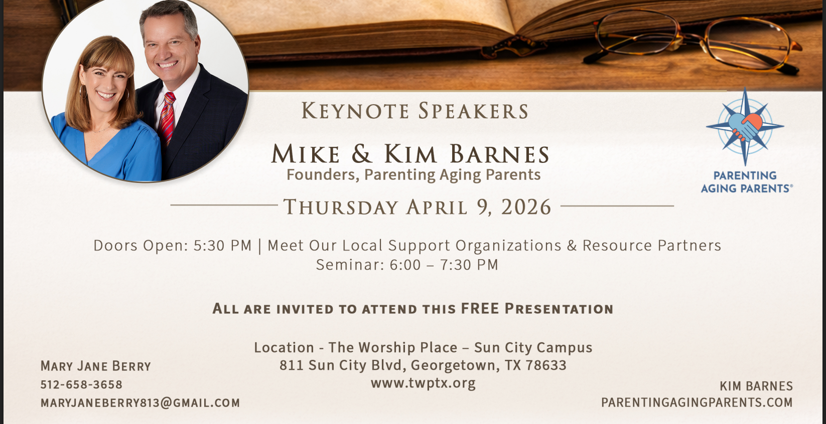 The Hardest Job You NEVER Trained For-Caring for a Loved one with Dementia Thursday, April 9, 2026 5:30 PM 7:30 PM 17:30 19:30 the worship place (map) Google Calendar ICS A Gift of Time will be there as well!